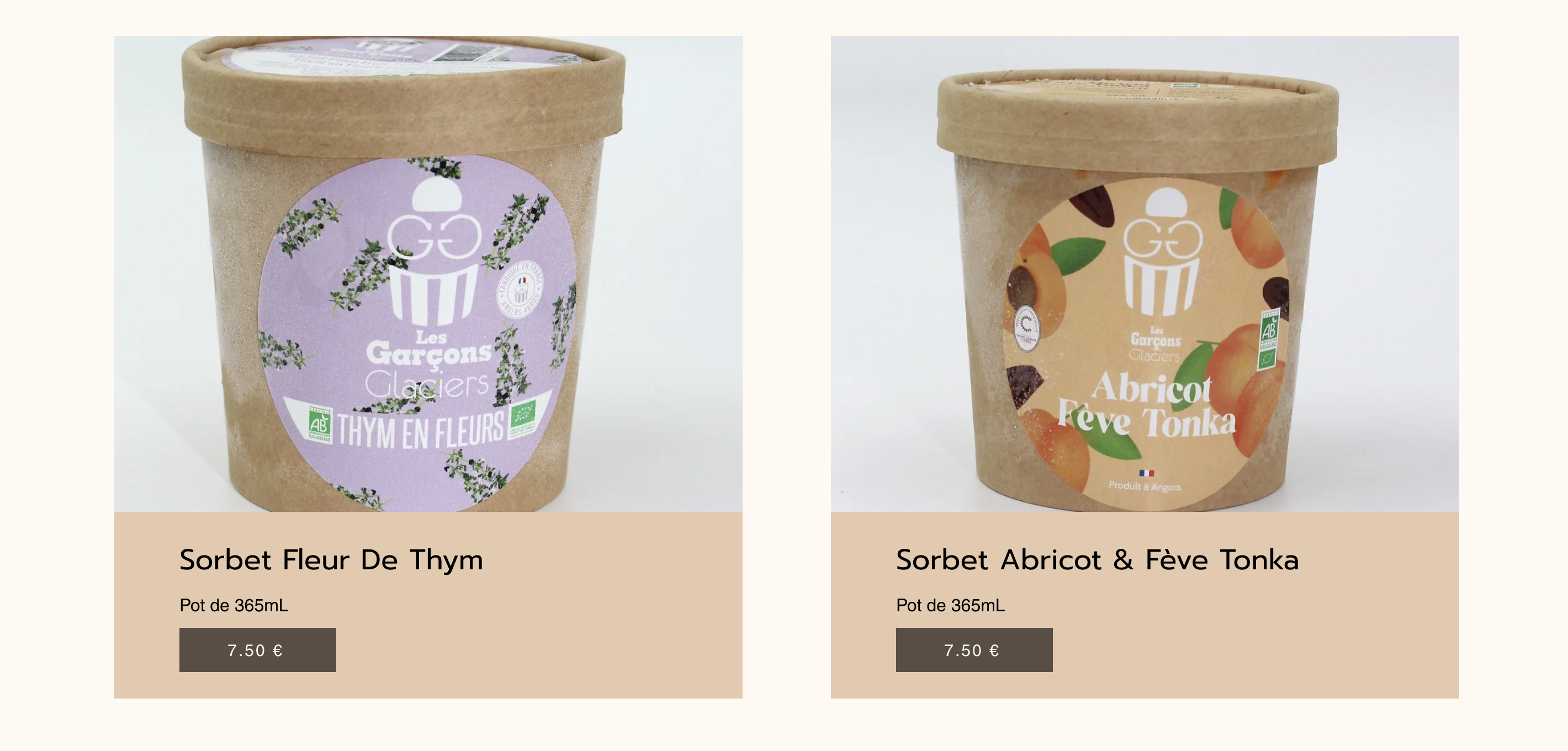 J'ai fais le choix du beige et du blanc pour transmettre un sentiment de naturalité et d'authenticité. Le beige peut évoquer des éléments naturels comme le sable ou le bois, ce qui est interprété comme des ingrédients naturels et artisanaux utilisés dans la fabrication des glaces de l'entreprise. J'ai choisi plutôt un logotype en forme de cercle car le cercle est un symbole universel de totalité, d'unité et d'équilibre, ce qui peut véhiculer un message de perfection ou d'harmonie pour une marque.